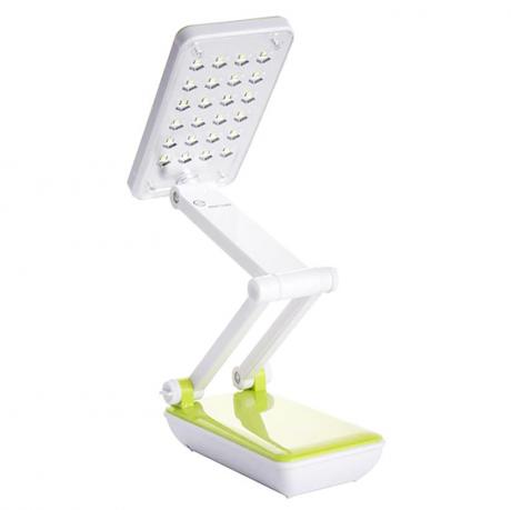 Ця LED настільна лампа моделі 1018 є універсальною для використання в офісі або дома. Вона має регульовану висоту та кут розсіювання світла. Лампа оснащена 20 світлодіодами, має потужність 2 Вт та 2 рівні освітленості. Може працювати від акумулятора або мережі. Її висота становить 27,5 см, а ширина - 7 см.
