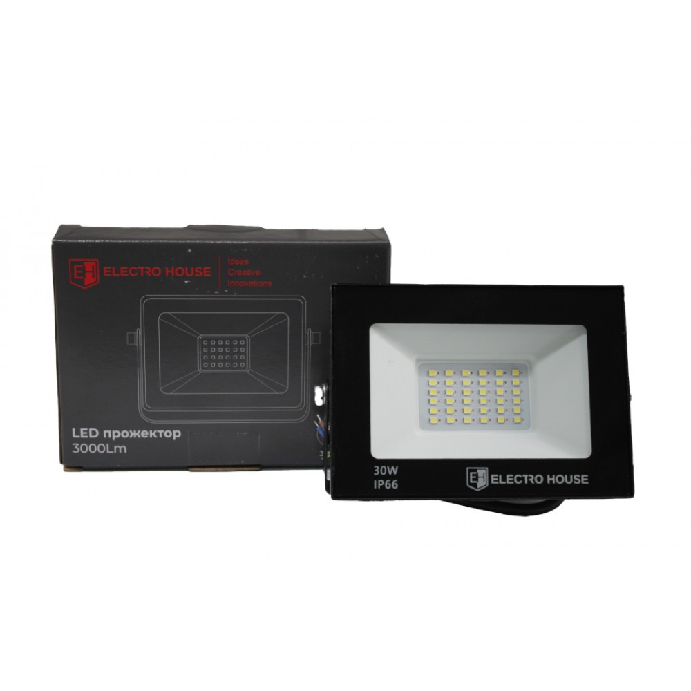 LED прожектор 3000Lm от Electro House – это эффективное решение для освещения придомовых территорий, гаражей, складов, рекламных конструкций и других объектов. Благодаря мощности 30W и световому потоку 3000Lm он обеспечивает яркий белый свет (6500K), максимально приближенный к естественному дневному освещению.