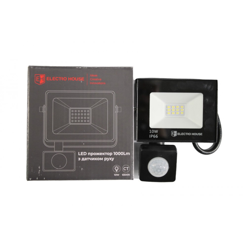 LED прожектор с датчиком движения 10Вт 1000 Лм 6500К холодный белый SMD2835 EH-FDLS-10W от Electro House – это удобное и энергоэффективное решение для автоматического освещения придомовых территорий, гаражей, складов, парковок и других объектов. Благодаря мощности 10Вт и световому потоку 1000 Лм он обеспечивает яркий белый свет (6500K), максимально приближенный к естественному дневному освещению.
