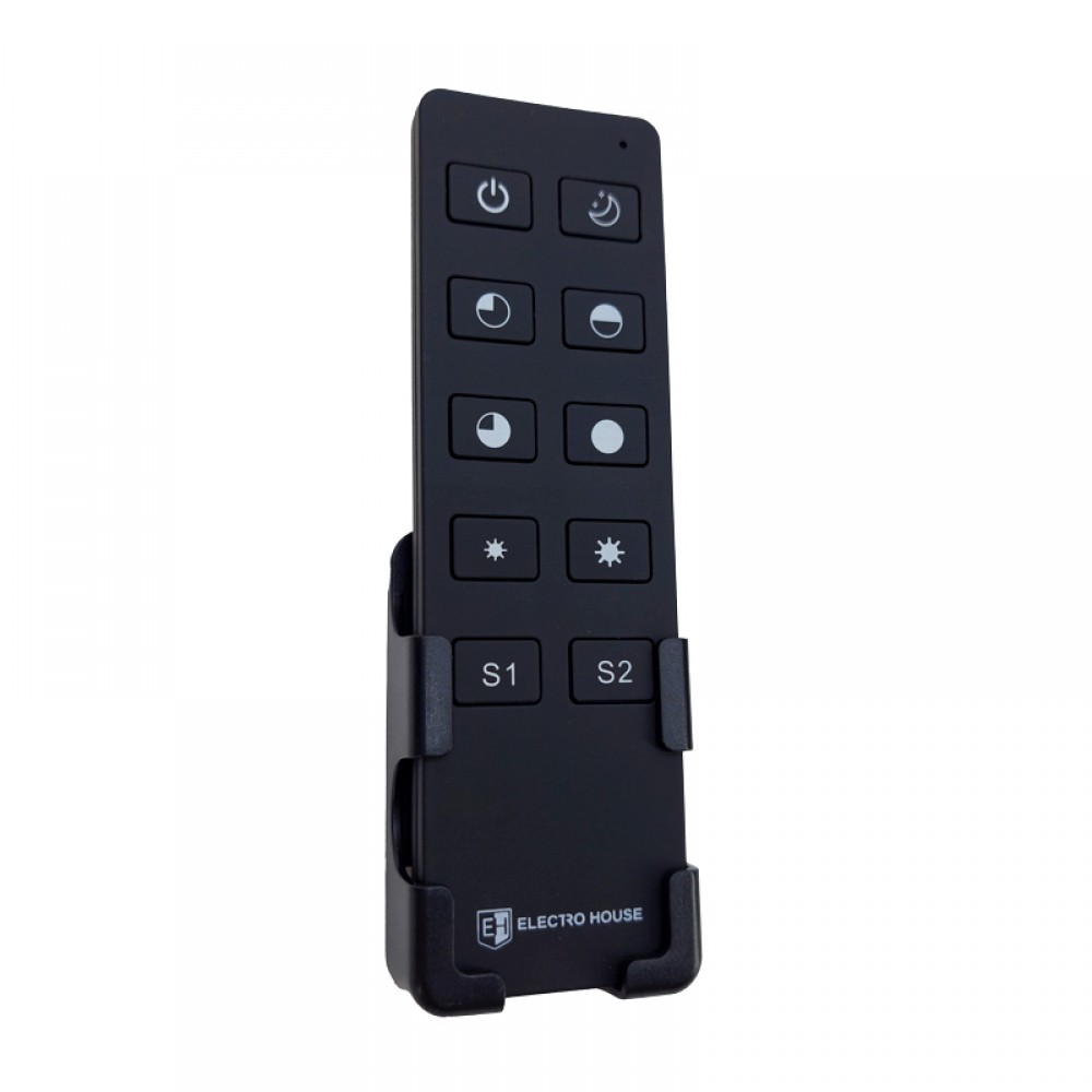 RF Пульт EH-DMR предназначен для использования с диммер-панелью, он делает более комфортной эксплуатацию осветительных приборов. Дистанционный пульт позволяет плавно регулировать уровень освещения, быстро переключать режимы яркости (ночной режим, 25, 50, 75 и 100 процентов), а также включать и выключать освещение. Позволяет сохранить собственные настройки яркости для их быстрого применения. Есть светодиодный индикатор включения. Для большего удобства пульт комплектуется настенным держателем, который можно прикрепить с помощью саморезов или двустороннего скотча (скотч и саморезы идут в комплекте).