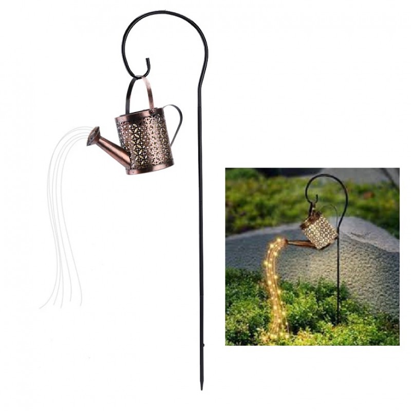 Декоративный светильник "Лейка" с держателем, с эффектом падающих капель, на солнечной батарее. Держатель в комплекте. Идеально подходит для использования на открытом воздухе в саду, для декоративной подсветки. Водонепроницаемость светильника, дает возможность использовать его на улице в дождливые дни. Подходит для мест, где обычное электроснабжение отсутствует. Светильник заряжается от солнечных панелей и хранит энергию во встроенном аккумуляторе. Размер: Выс.- 15 см. Шир.- 21 см. Держатель: Выс.- 80 см. Материал: металл