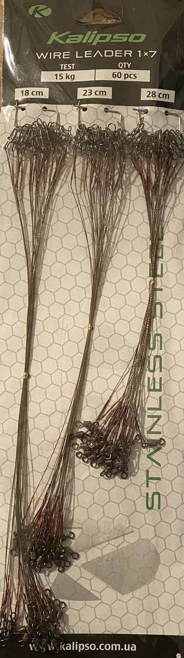 Набор стальных поводков, количество волокон 1х7, 60шт в упаковке (по 20 каждого размера)