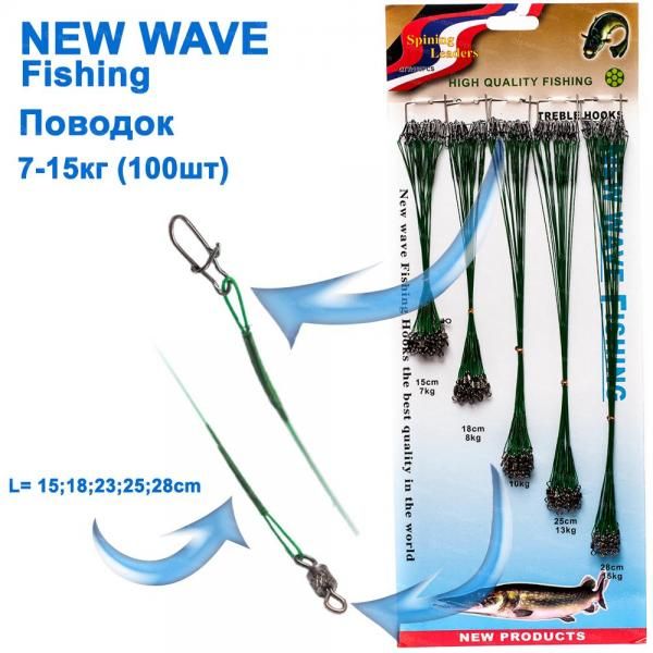 Поводок New Wave Fishing зеленый (100шт) *
