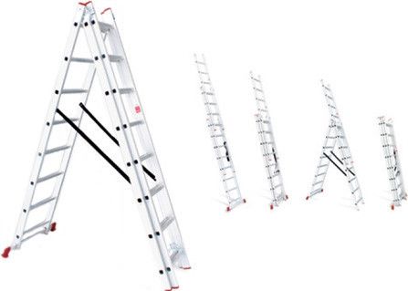 Универсальная алюминиевая 3-х секционная раскладная лестница LT-0312 ТМ INTERTOOL, незаменима как в строительстве так и в быту. Лестница LT-0312 изготовлена из высококачественного экструдированного алюминиевого профиля, соответствует европейскому стандарту EN131. При весе 18,7 кг выдерживает нагрузку до 150 кг. Каждая из 3-х секций оснащена 12 рифлеными ступенями шириной 280 мм. Высота в разложенном виде 7887 мм, в сложенном 3419 мм. Противоскользящие опорные заглушки обеспечивают надежное сцепление с опорной поверхностью, препятствуют скольжению. Может применяться как приставная, выдвижная лестница и свободностоящая стремянка. Атмосферостойкие ленты предотвращают самопроизвольное раздвижение боковин.