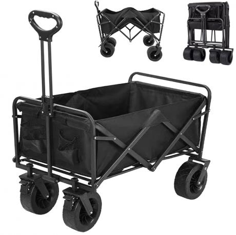 Візок ідеально підходить для зберігання та перевезення будь-яких речей. Складна конструкція допоможе компактно скласти візок, коли він не використовується. Місткість літра дозволяє зберігати і перевозити речі загальною вагою до кг. Конструкцію доповнюють дві пари коліщатків та ручка з можливістю регулювання кута нахилу. Розміри моделі з урахуванням ручки становлять см, а у складеному вигляді – см. Вага кг.