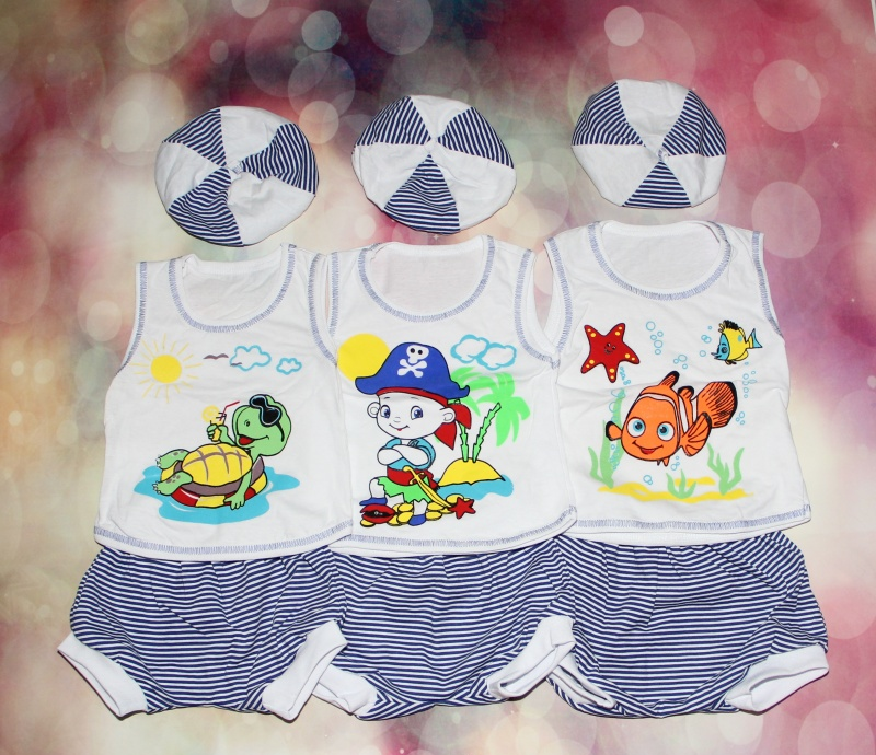 Детский комплект летний. Костюм для мальчиков изготовлен из кулира