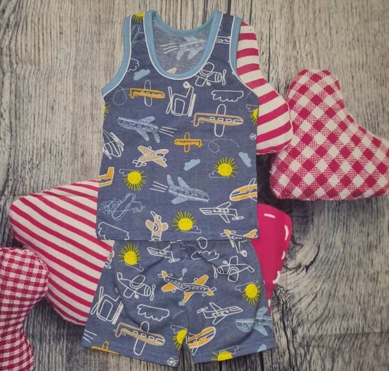 Детский летний костюм. Детский комплект состоит из майки и шортов.