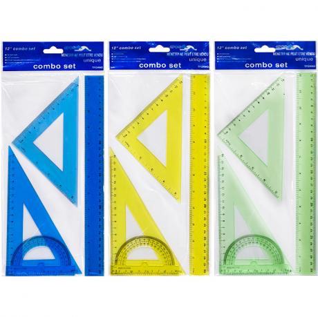 Цей набір геометричних інструментів стане незамінним помічником для школярів, студентів, архітекторів та інженерів. У комплект входять основні вимірювальні прилади, необхідні для креслення, побудови кутів та геометричних фігур. Усі елементи виготовлені з якісного пластику, стійкого до зламів та механічних пошкоджень. Чітка розмітка шкали забезпечує точні вимірювання та зручність у роботі.