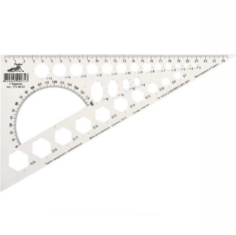 Трикутник с транспортиром і з геометричними фігурами.