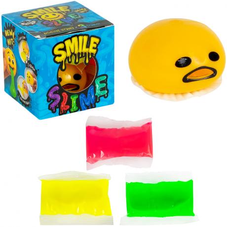 Антистрес-іграшка Smile Slime — кумедний гумовий смайлик із набором із 3 яскравих слаймів. Іграшка допомагає зняти стрес і розвиває дрібну моторику. Щоб грати, потрібно набрати слайм усередину смайлика та натиснути — він «випустить язичок». Представлена у 3 кольорах, підходить для дітей від 5 років. Упаковка 7×7×7 см. Чудовий варіант для подарунка або веселих розваг.