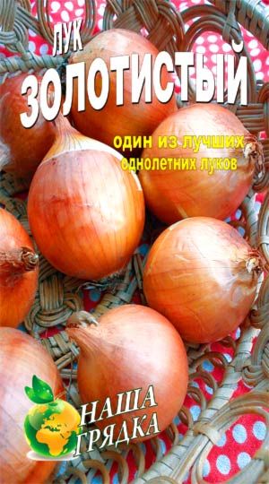 Лук "Золотистый" однолетний Среднепоздний сорт репчатого лука. Возделывается в однолетней культуре. От всходов до массового полегания листьев 120-130дня. Луковица округлой формы, массой 110-120 г, сухие чешуи золотисто-желтые,мякоть сочная — белая. Малогнездный, однозачатковый, плотность выше средней. Вкус полуострый. Лежкость отличная.