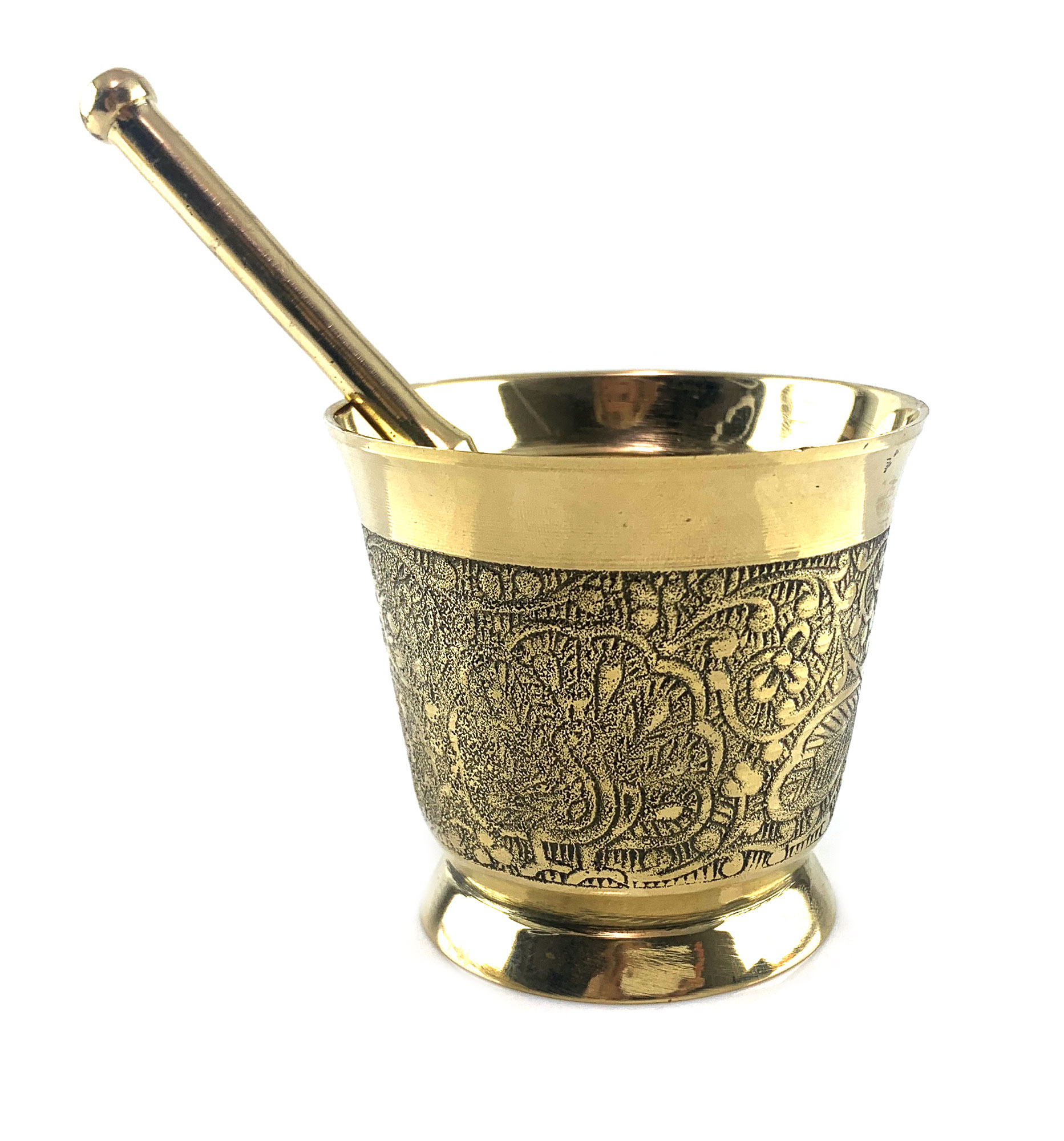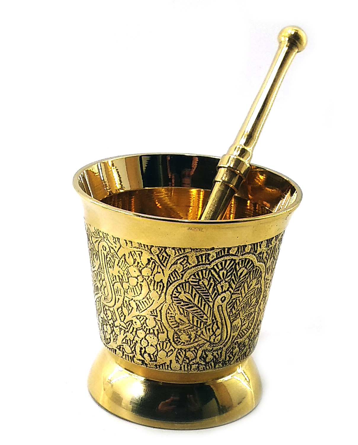 Ступка выполнена в золотистом цвете, что добавляет к ней изысканности и роскоши.