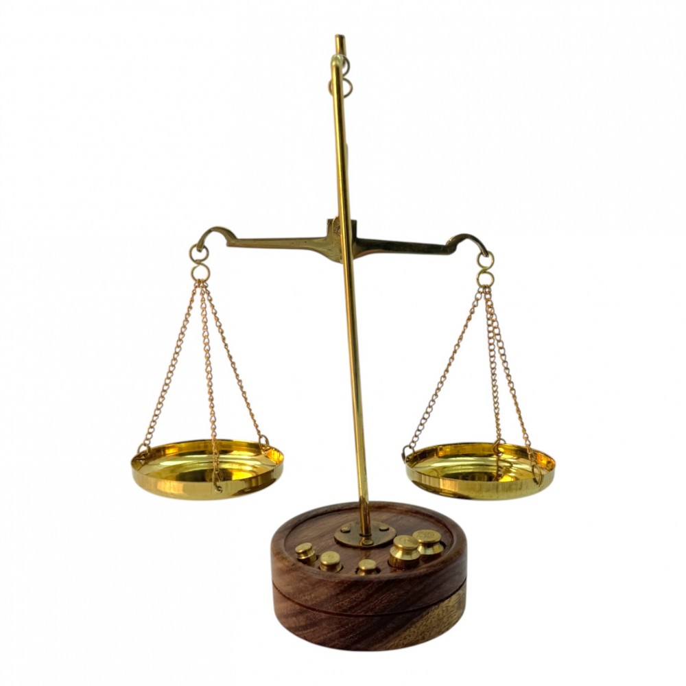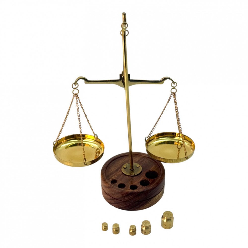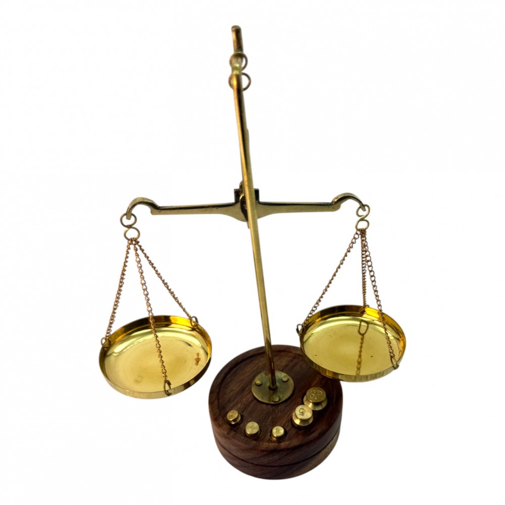 Весы бронзовые на деревянной подставке