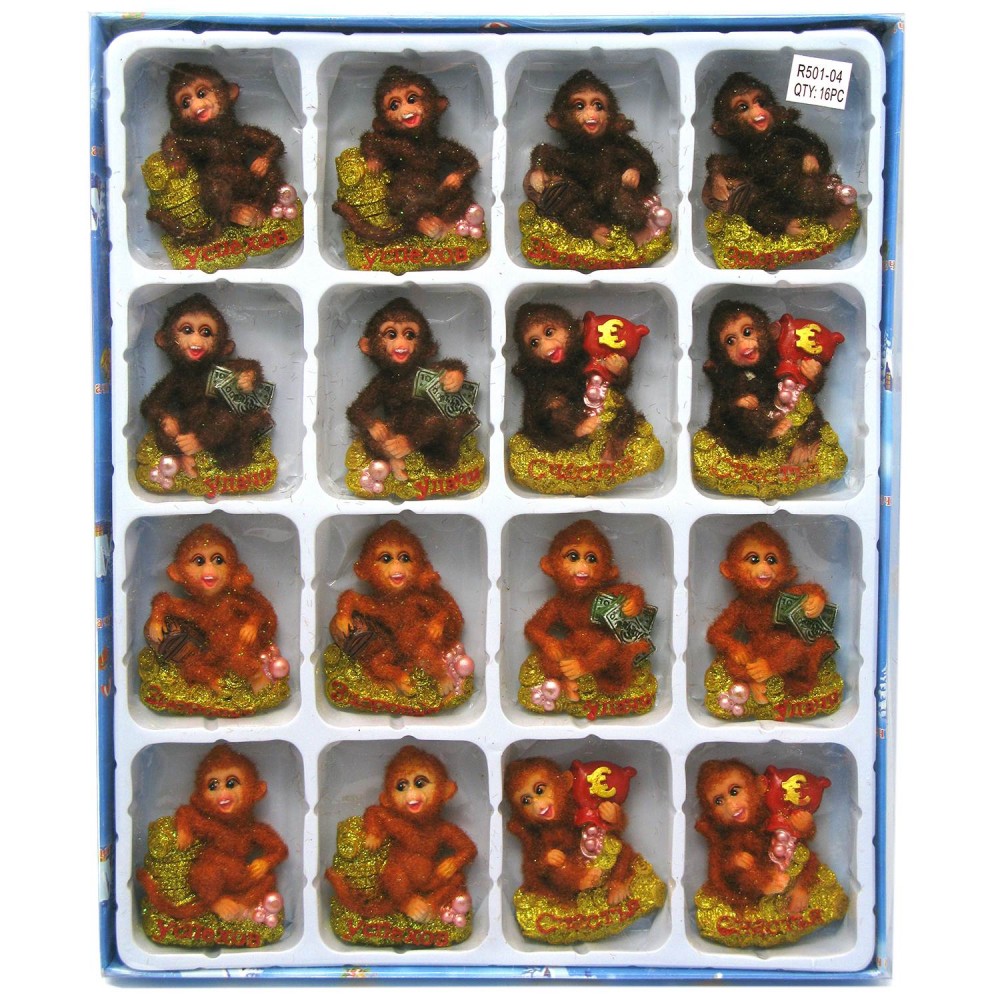 Магнит на холодильник Обезьянка с деньгами (16 шт/уп)(7х5х2 см) код 28686