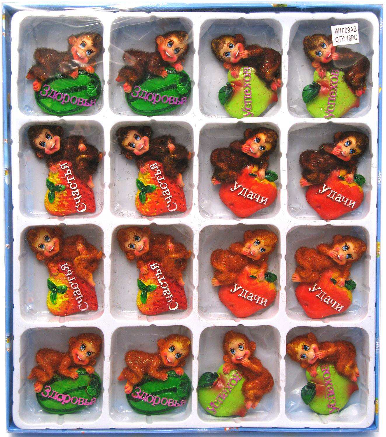 Магнит на холодильник Обезьянка с фруктами (16 шт/уп)(16 шт/уп) код 28677