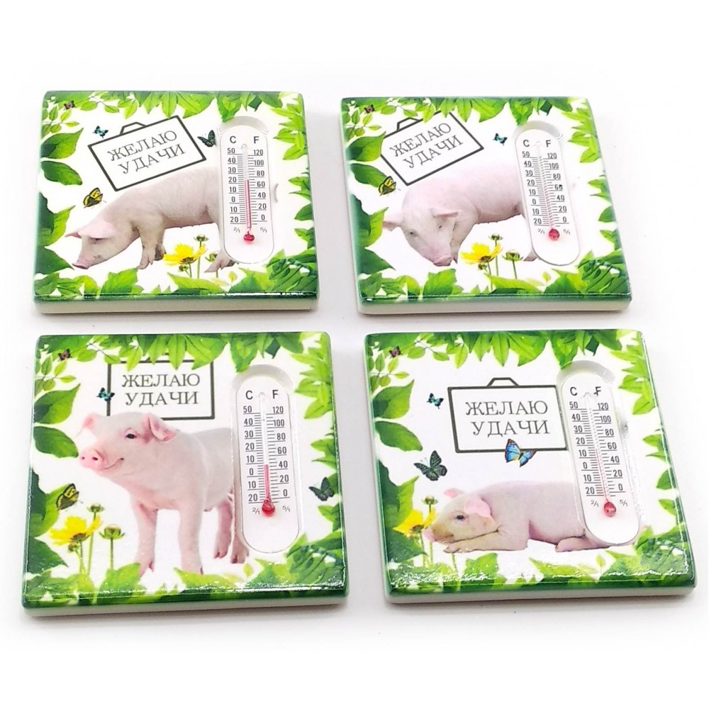 Магнит на холодильник "Свинка с термометром" (12 шт/уп) (7,5х7,5х1 см)