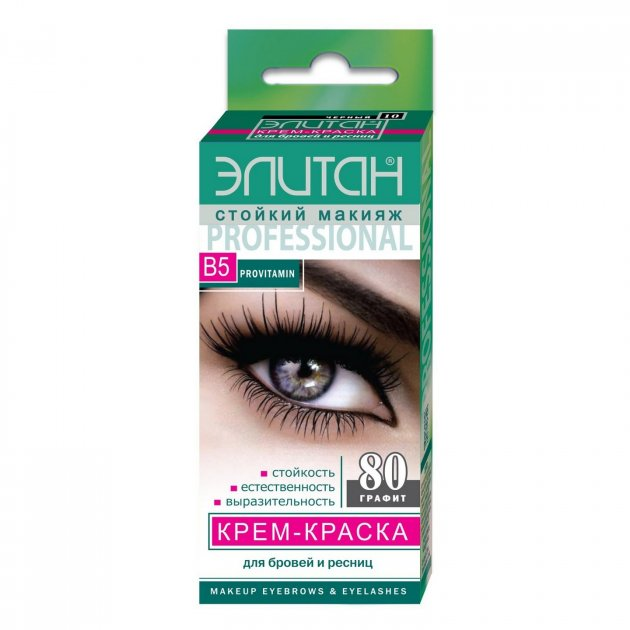 Крем-фарба для брів та вій від Елітан, яка допоможе у домашньому та професійному догляді за бровами та віями. Ви самостійно можете обирати відтінок та ступінь насиченості профарбовування. Також фарба додатково збагачує волосинки корисними оліями, додаючи їм блиск та мякість. Зав'яки витамину В5 у складі крем-фарби волосинки та вії менше випадають, а ще легше піддаються вкладанню. У складі фарба, оксилювач, спеціальна щіточка для фарбування та спонжі.