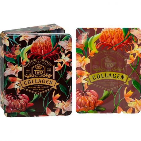 Набір Масок 2в1 тканинних 10шт Collagen для обличчя в металевому боксі TVO-074
