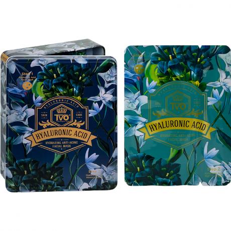 Набір масок 2в1 тканинних 10шт Hyaluronic Acid для обличчя в металевому боксіTVO-073