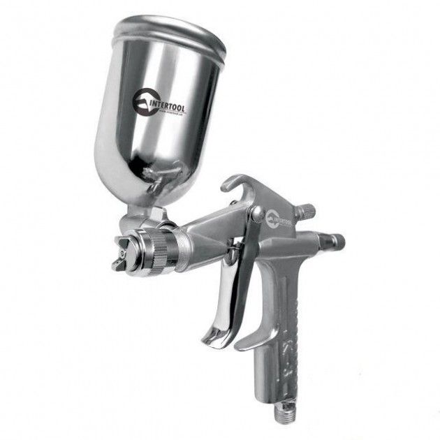 Пистолет покрасочный пневматический, форсунка 1.5мм, В/Б металл, 600мл, 3.5-5bar. INTERTOOL PT-0205