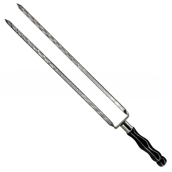 Двойные шампура подходят для приготовления тушек, стейков, ребер, больших куриных ножек, рыбы, мяса и овощей.