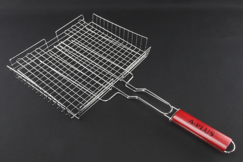 Решётка для гриля изготовлена из пищевой нержавеющей стали высокого качества и ручкой из дерева. Этот металл не вступает в реакцию с пищей во время эксплуатации, а значит не меняет ее вкус и запах. Товар является прочным и долговечным, имеет удобную ручку благодаря которой можно легко переворачивать решётку. Является прочной и долговечной. Особенностью данной модели является высота бортиков. Имеет плоскую решетку, благодаря которой удобно фиксировать продукты внутри решетки. С помощью такой многофункциональной решетки можно приготовить различные блюда (мясо, рыба, овощи). Приготовление на решетке экономит Ваше время. Также её легко очистить после эксплуатации даже в прохладной воде. Станет незаменимым помощником для дома, на даче или рыбалке. Прекрасно подходит для оборудования общепита.
