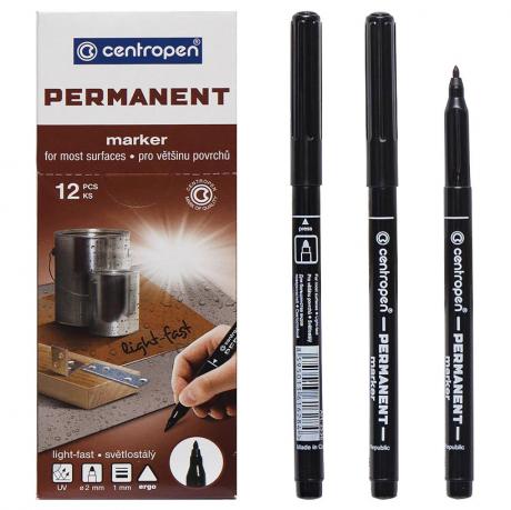 Перманентний маркер. Призначений для нанесення стійких написів практично на будь-якій поверхні. Має підвищену світлостійкість. Напис стійка до впливу вологи, стирання, атмосферних впливом. Необхідно зберігати тільки в горизонтальному положенні. Вузол 2 мм, товщина лінії 1 мм. Колір чорний. Ціна вказана за 1 маркер. В упаковці 12 штук.