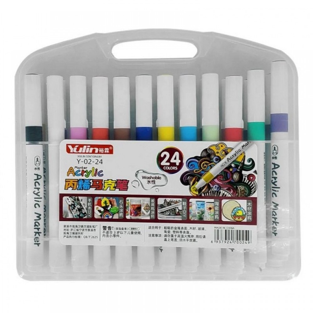 Воплотите свои самые смелые творческие идеи с набором акриловых маркеров из 24 ярких и насыщенных цветов. Этот комплект станет незаменимым инструментом для художников, дизайнеров, студентов и всех любителей творчества, желающих украсить свои работы яркими и долговечными красками. Наши акриловые маркеры идеально подходят для работы с различными поверхностями. Вы можете использовать их для рисования, раскрашивания, декорирования и создания творческих проектов на бумаге, картоне, дереве, ткани, стекле, керамике, камне, металле и других материалах. Водно-акриловая основа маркеров обеспечивает интенсивность цвета, водостойкость и долговечность. Кроме того, они полностью безопасны и могут использоваться детьми. Характеристики: Толщина линии: 1-3 мм (в зависимости от нажима). Количество цветов: 24. Тип чернил: Акриловая водостойкая краска. Механизм подачи: Клапанный, для равномерного потока краски