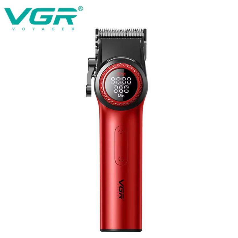 Аккумуляторная машинка для стрижки (clipper) VGR V-001 RED, 10 насадок, 9000 RPM, 4600 mAh, LED light, LED