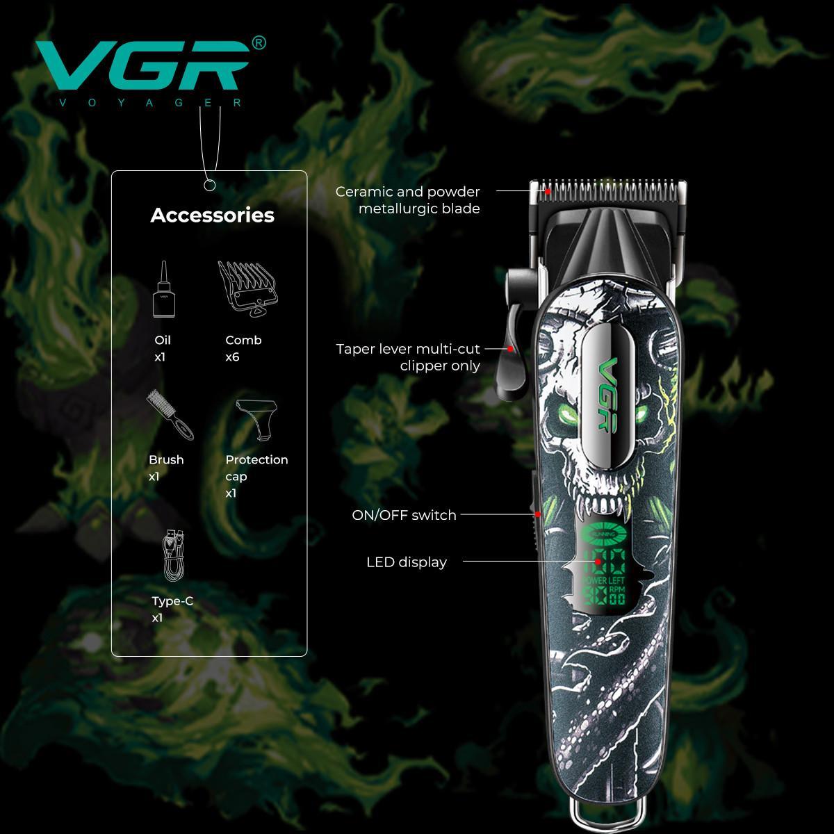 Аккумуляторная машинка для стрижки (clipper) VGR V-279 GREEN, 6 насадок, 9000 RPM, 2500 mAh, LED display