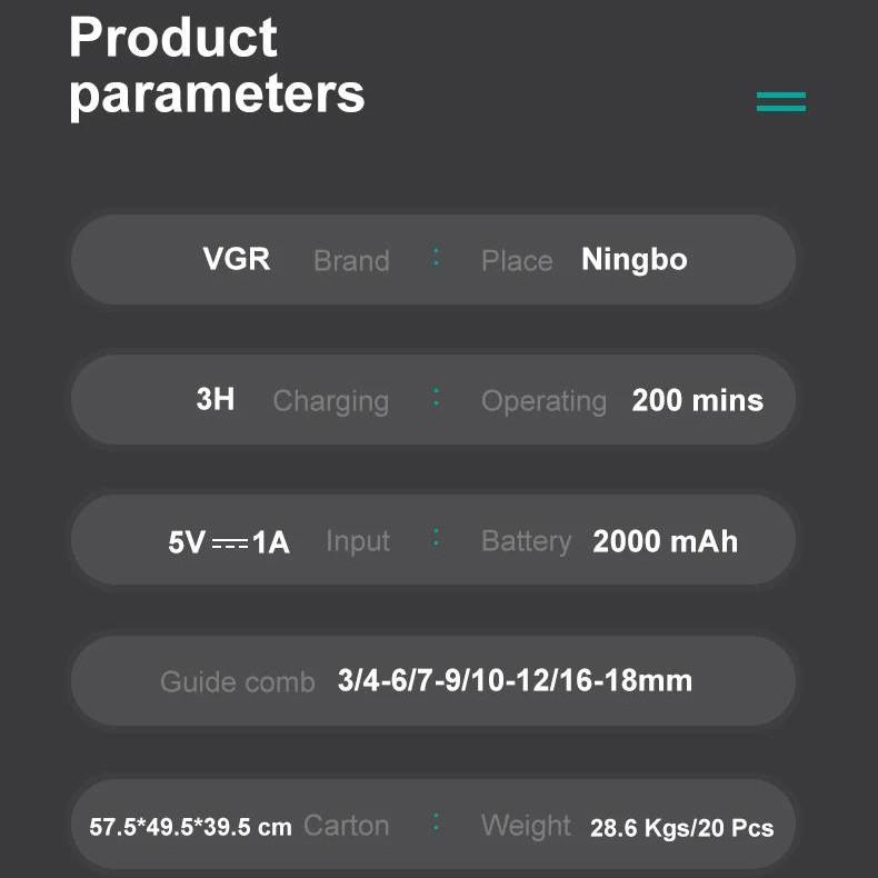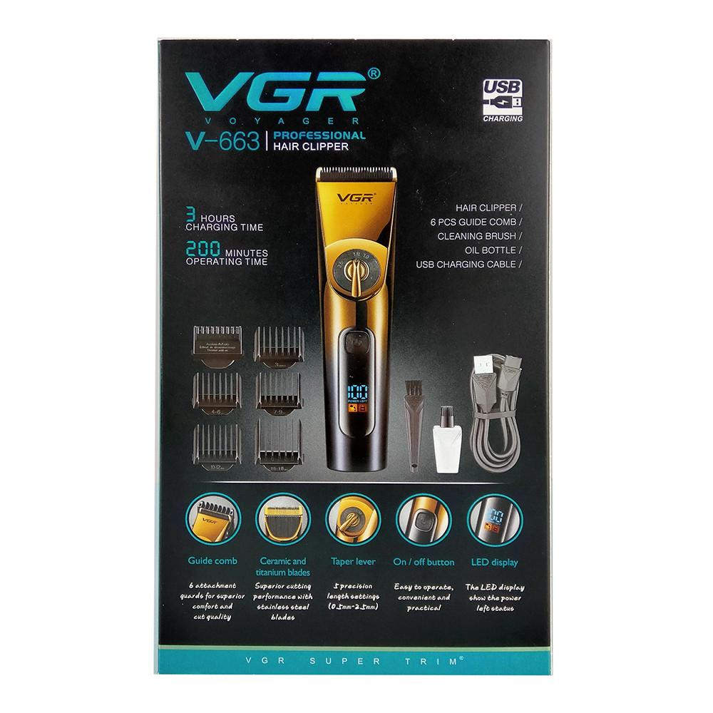 Аккумуляторная машинка для стрижки (clipper) VGR V-663, 6 насадок, LED display, IPX6