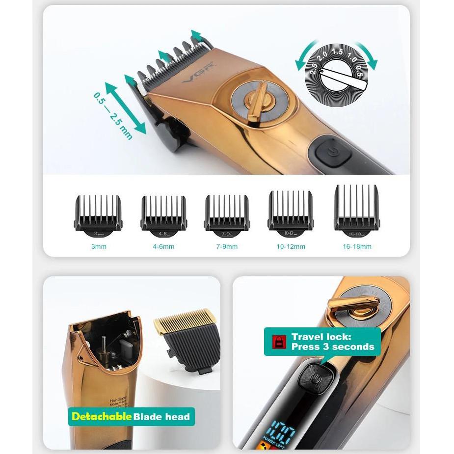 Аккумуляторная машинка для стрижки волос VGR V-280, с дисплеем и насадками Gold