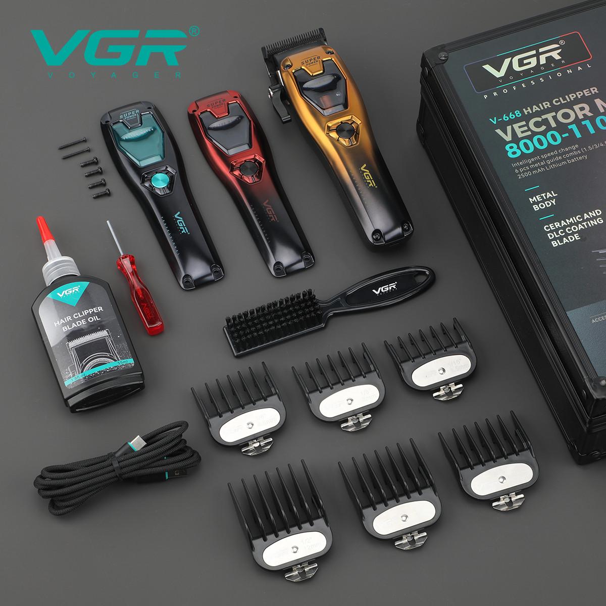 Аккумуляторная машинка для стрижки (clipper) VGR V-668, VECTOR MOTOR 8000-11000 RPM, 6 насадок, LED display