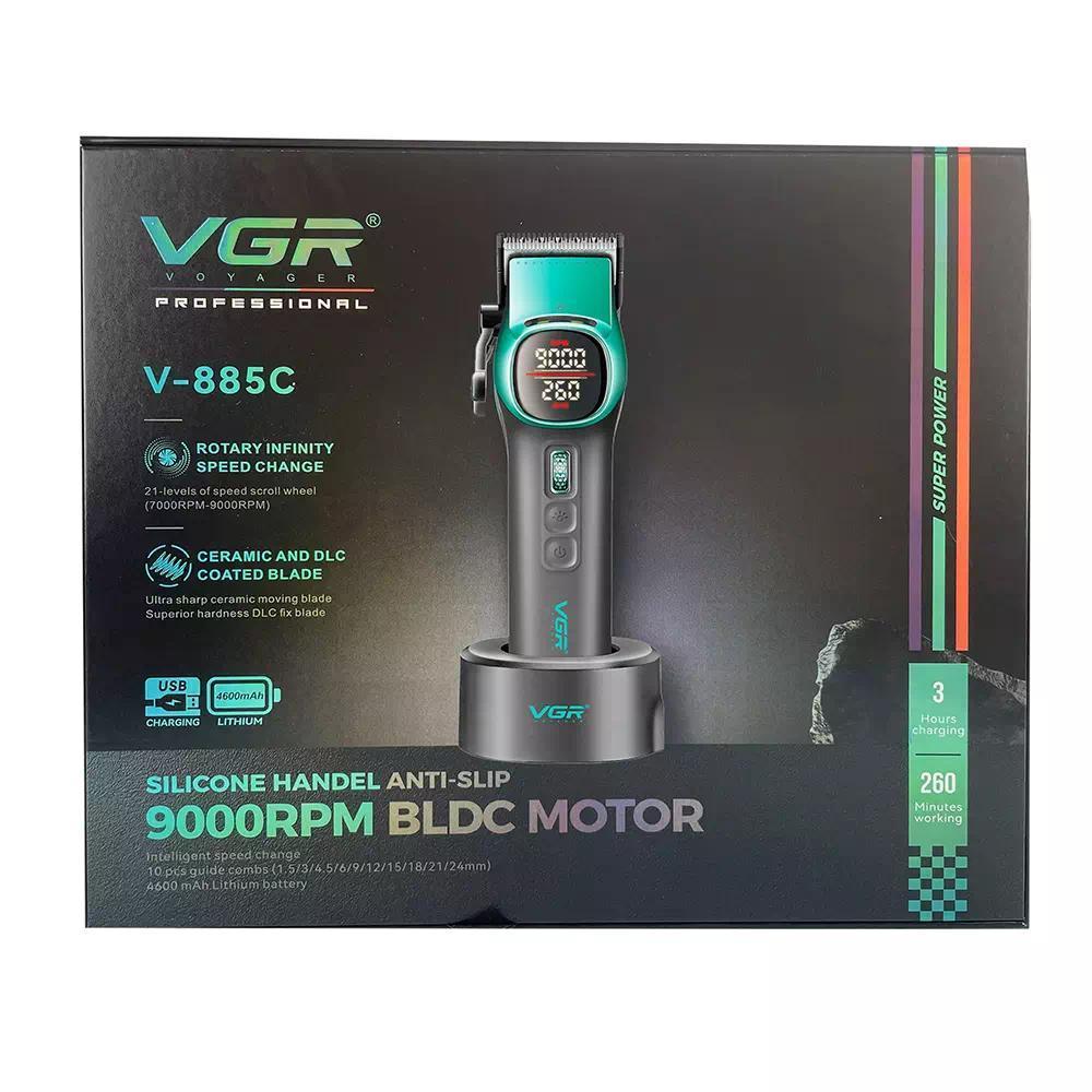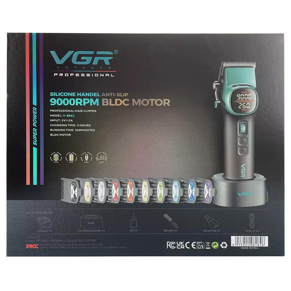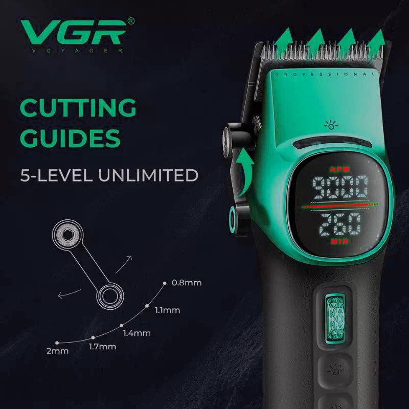 Аккумуляторная машинка для стрижки (clipper) VGR V-885C GREEN, 10 насадок, LED display