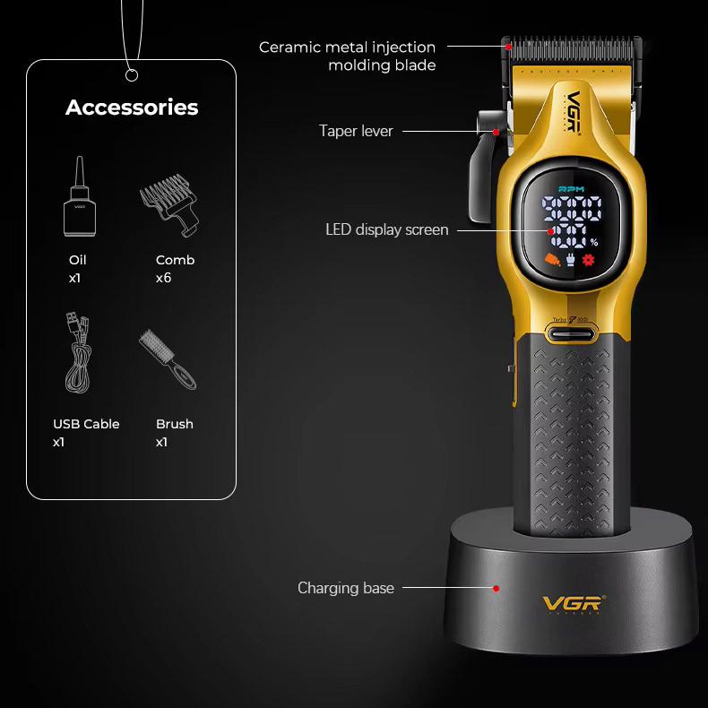 | Название (укр.), | Акумуляторна машника для стриження (clipper) VGR V-886C GOLD, LED display |