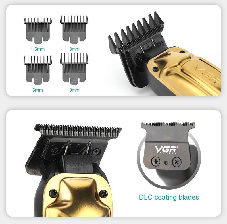 Аккумуляторная машинка для стрижки (clipper) VGR V-904 GOLD, 4 насадки, 2000 mAh, LED display