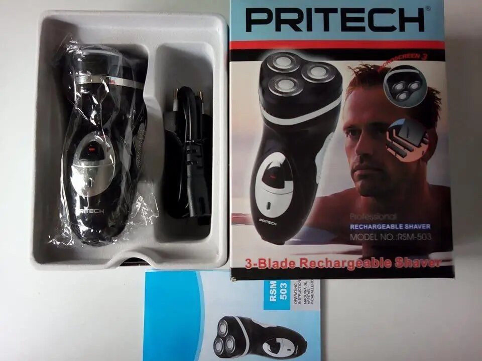 Pritech RSM-503 – мужская электробритва, обеспечивающая идеально гладкое бритьё. С таким прибором Вы будете выглядеть на все 100%, где бы Вы не находились и чем бы не занимались в текущий момент. Благодаря трём бритвенных головкам с супер острыми ножами и эргономичной формой поверхности, волоски приподнимаются и срезаются возле самой поверхности кожи. Этому способствует и подвижность головок с лезвиями внутри. Бритвенный прибор повторяет все изгибы и малейшие неровности на Вашем лице, тем самым плотно прилегая к коже.