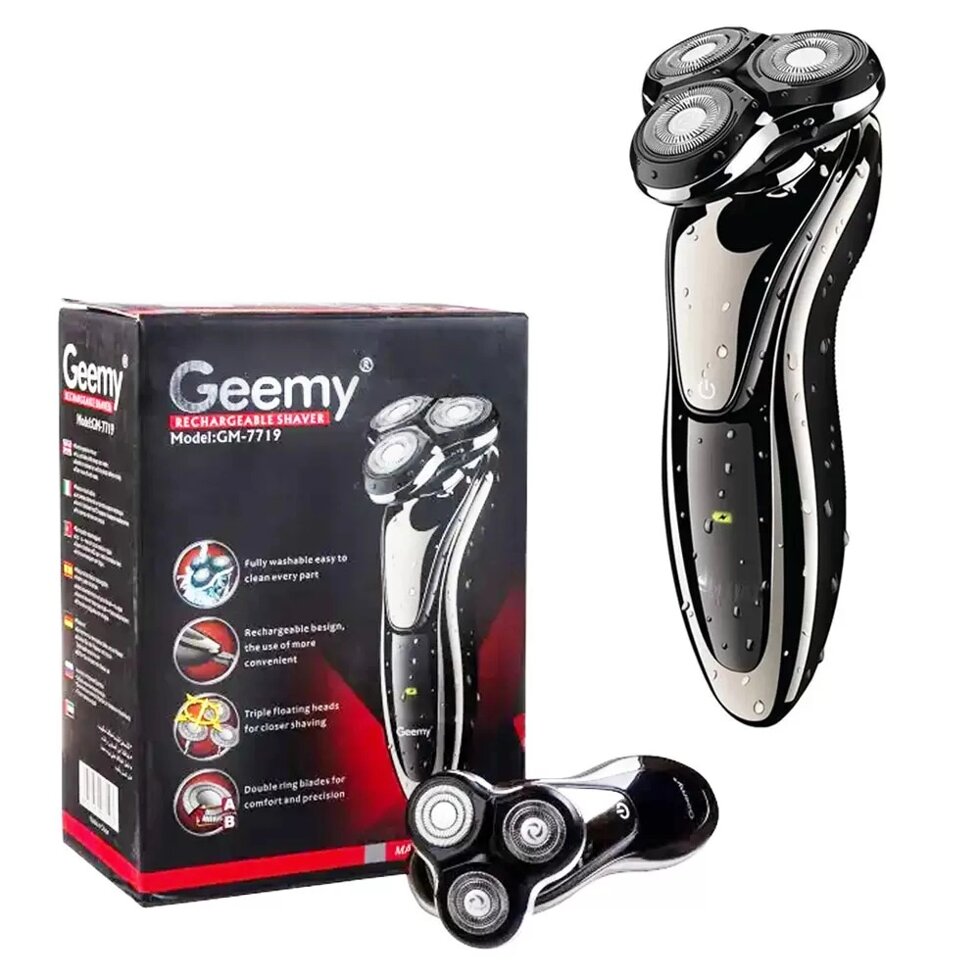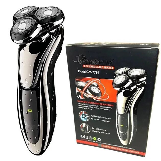 Роторная электробритва Gemei Gm-7719 предназначена для эффективного сухого и влажного бритья с гелем или пеной, которое обеспечивает дополнительную защиту кожи. Три бритвенные головки работают на один результат: мягко и максимально чисто избавить кожу лица от щетины. Еще одним преимуществом роторных бритв является спобность ножей "плавать". При движении они таким образом повторяют рельеф лица, избавляя от микротравм и порезов. Устройство можно использовать и для корректировки бакенбард или висков, можно также подправить усы – в бритве есть триммер. После того, как сеанс бритья закончен, просто подставьте Gemei Gm-77197 под строю воды и промойте бритвенную головку – и бритва снова готова к работе. Бритва функционирует автономно, это значит, что Вы всегда можете взять ее в поездку. При полной зарядке, которая длится 8 часов, прибора хватает на 40-60 минут.