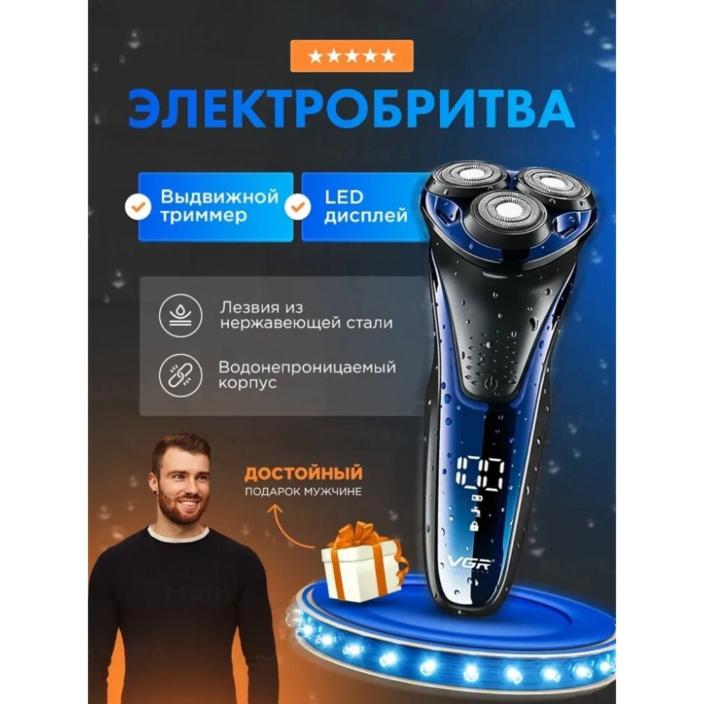 Электробритва для мужчин роторная для влажного и сухого бритья водонепроницаемая VGR IPX7 (V-306)