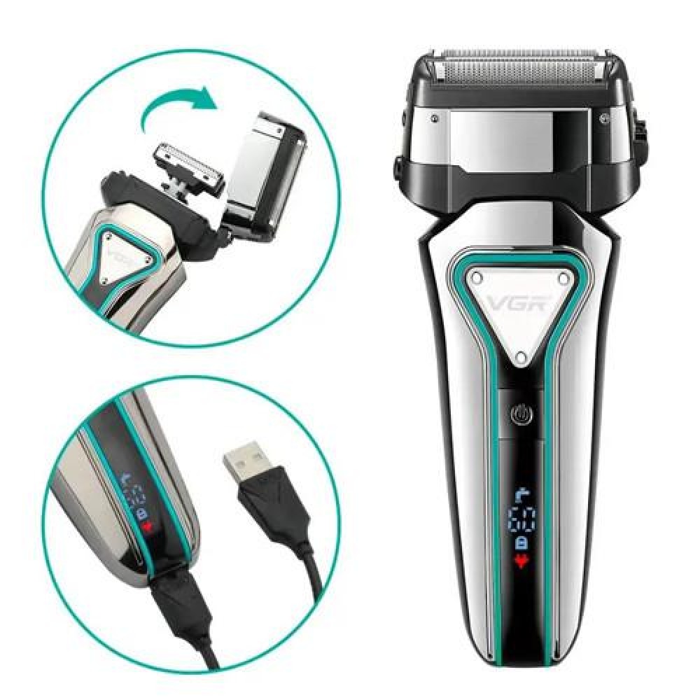 Электробритва VGR V-333 SILVER шейвер для сухого и влажного бритья, Waterproof, выдвижной, триммер, LED