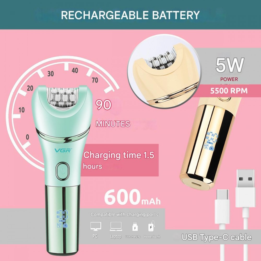 Аккумуляторная машинка для стрижки (clipper) VGR V-663, 6 насадок, LED display, IPX6