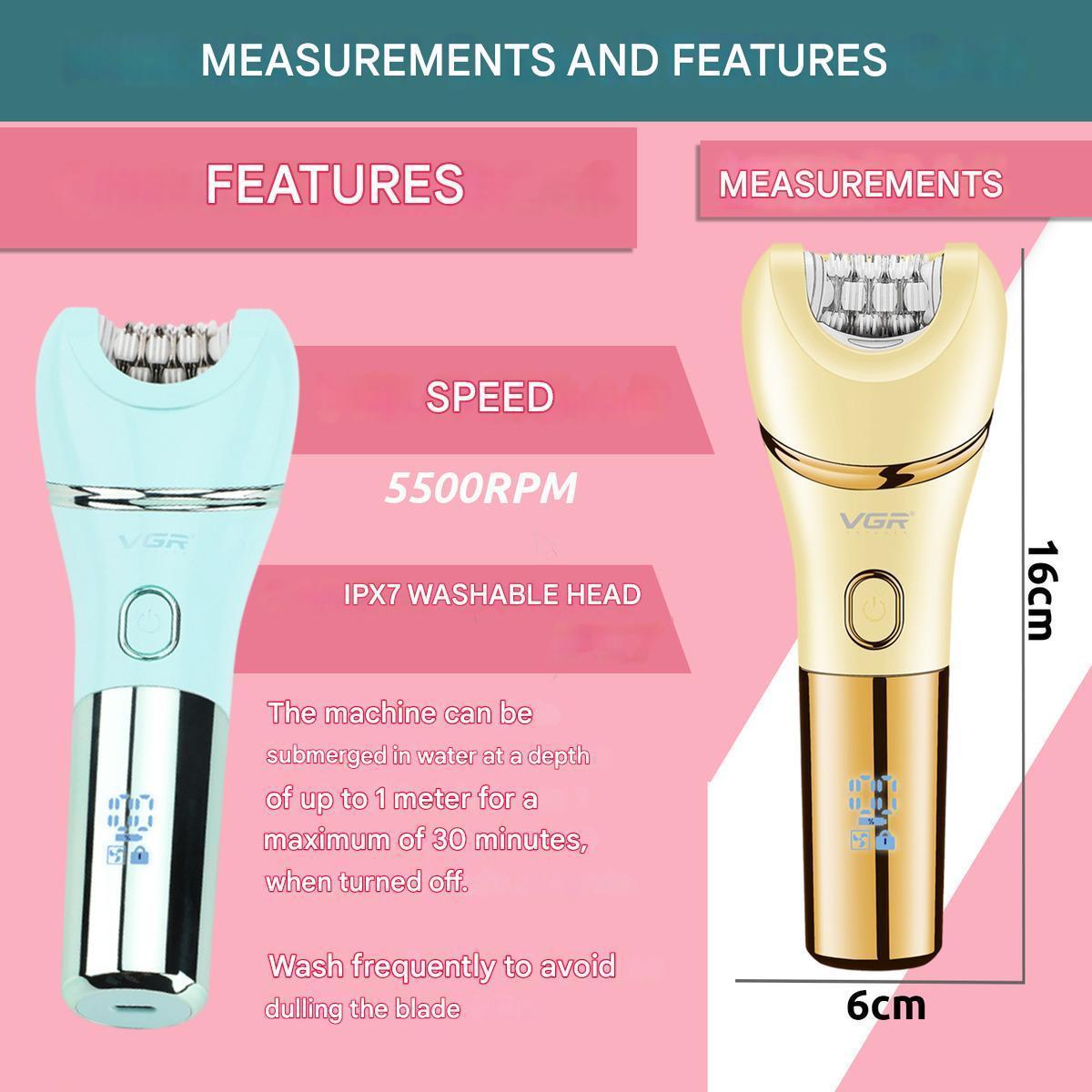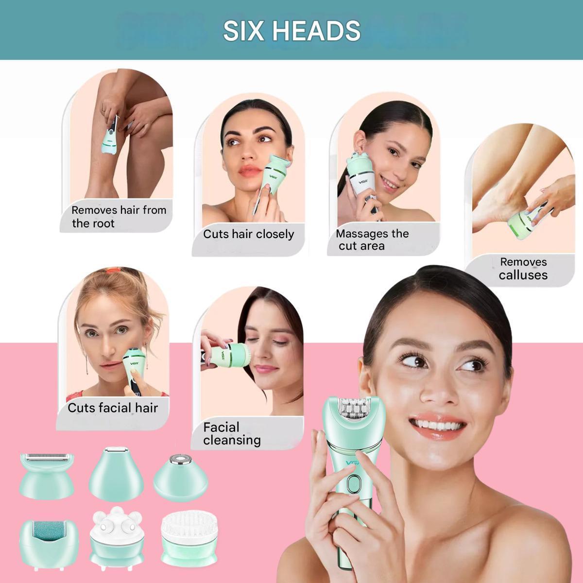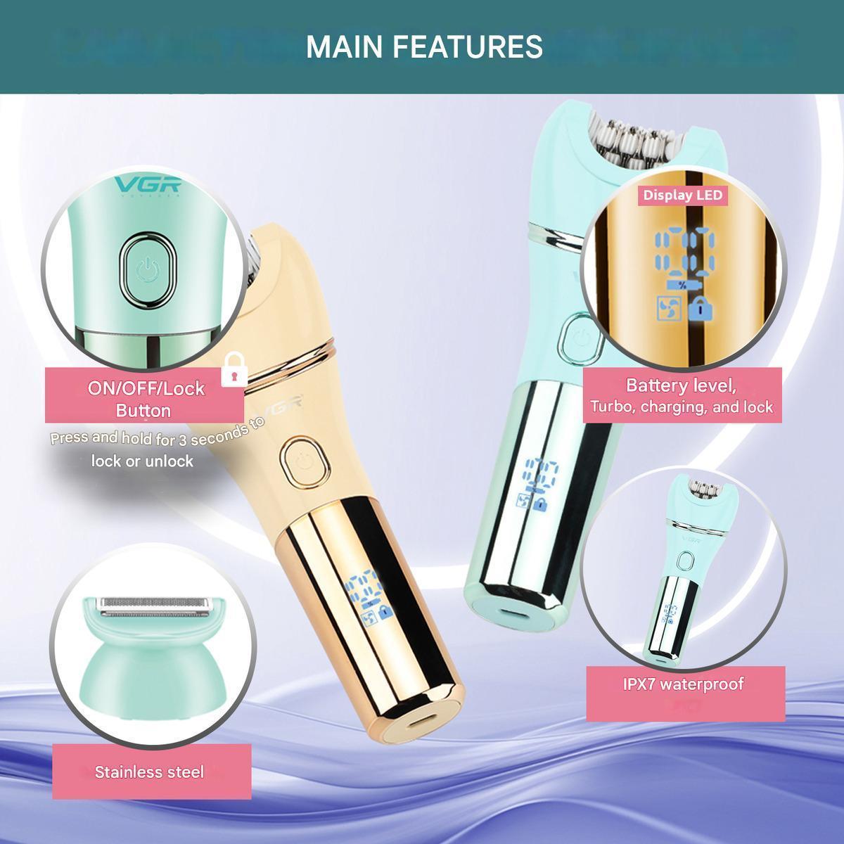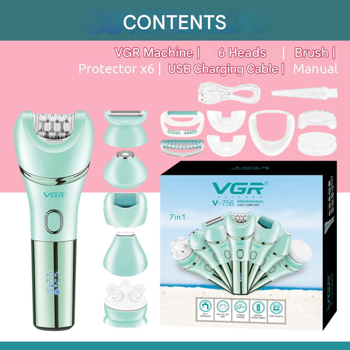 Эпилятор VGR 7 в 1 V-756 GREEN, 7 насадок, IPX7