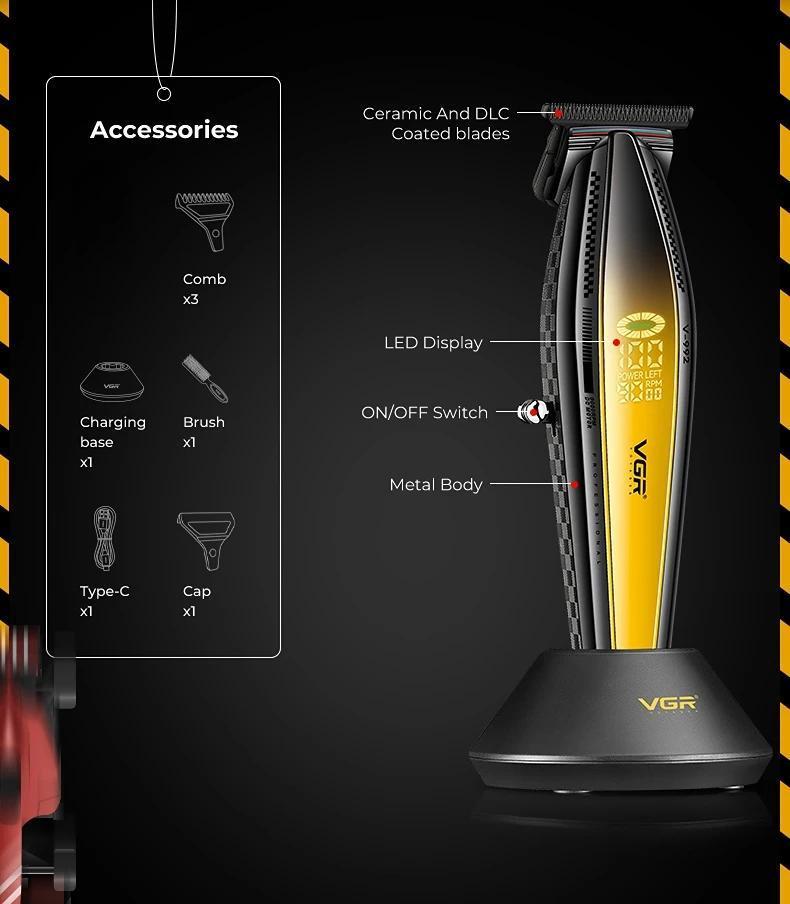Аккумуляторная машинка для стрижки (clipper) VGR V-886C GOLD, LED display, 9000RPM
