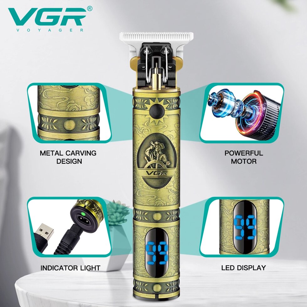 Комплект VGR 2 в 1 V-600&900 GOLD, аккумуляторная машинка для стрижки (clipper) и триммер, 10 насадок, LED