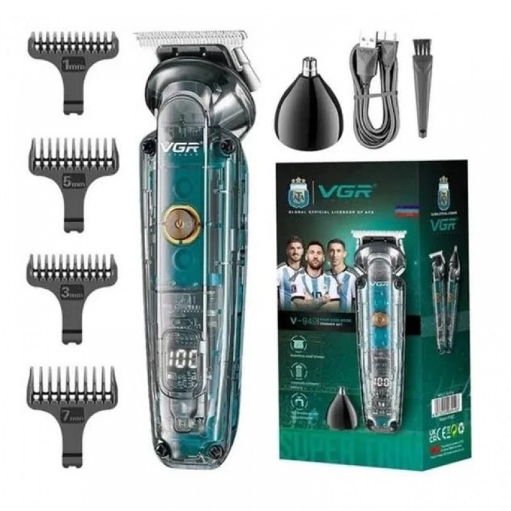 Триммер VGR V-946 с технологией охлаждения ICE TECHNOLOGY, 4 насадки, 8000 RPM, 3000 mAh, LED display