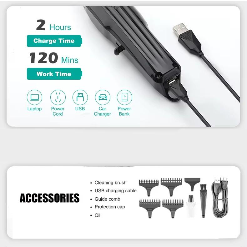 - Низкий уровень шума делает процесс стрижки более комфортным и менее раздражающим для клиента или самого себя.