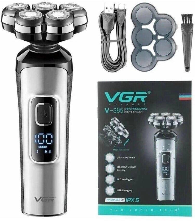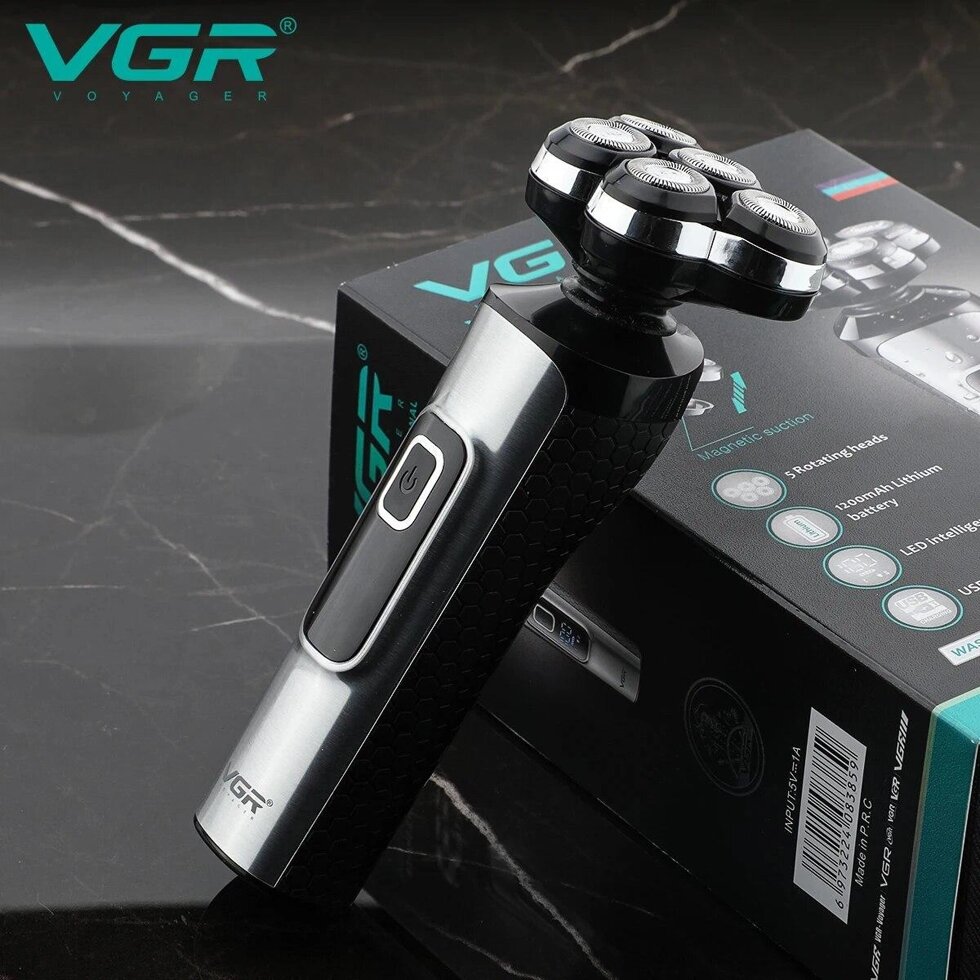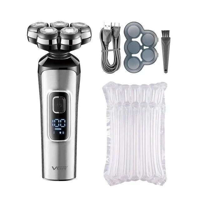 Мужская электробритва VGR V-385, роторная, с плавающими головками и дисплеем, Серый