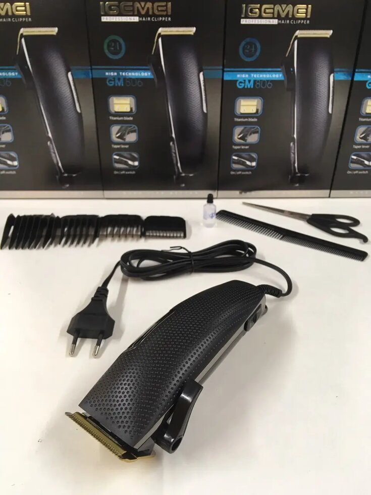 Надежная и качественная машинка для стрижки волос GEMEI GM 806 поможет создать стрижки разной длины – для этого она оснащена четырьмя насадками. Длина стрижки машинкой GEMEI GM 806 возможна от 3 до 12 мм. Эта функциональная машинка для стрижки волос GEMEI GM 806 будет полезна как парикмахеру-профессионалу, так и тем, кто предпочитает стричься дома, не обращаясь в салоны. Благодаря удобству в использовании, машинка для стрижки волос GEMEI GM 806 станет просто незаменимой в повседневной жизни. А ваши любимые мужчины всегда будут иметь ухоженный вид. Эта машинка для стрижки волос GEMEI GM 806 имеет надежные лезвия из нержавеющей стали с титановым покрытием. Корпус выглядит привлекательно и удобно размещается в руке. Среди дополнительных аксессуаров – расческа, ножницы, масло и щетка для чистки машинки. Машинка для стрижки волос GEMEI GM 806 работает от сети