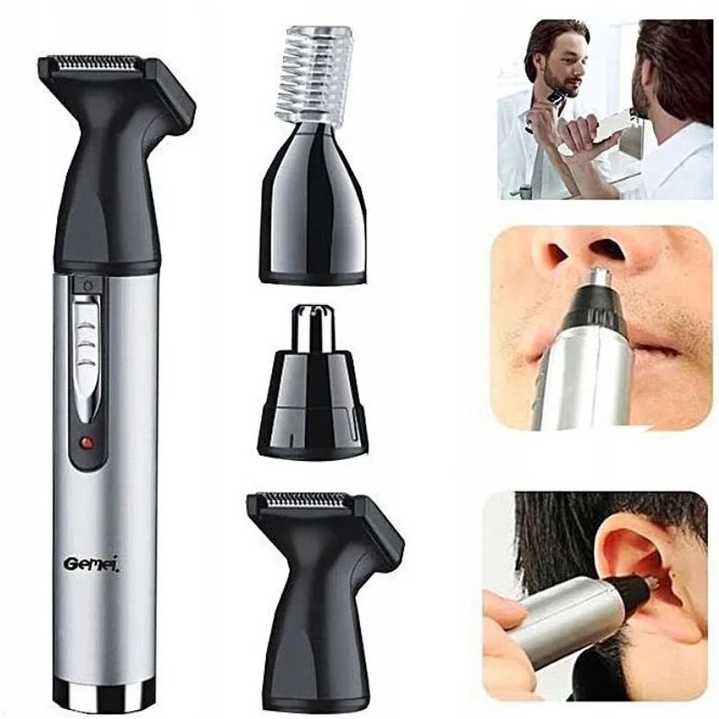 Триммер для носа ушей висков и шеи Gemei GM 3107 3в1 Серебристый с черным