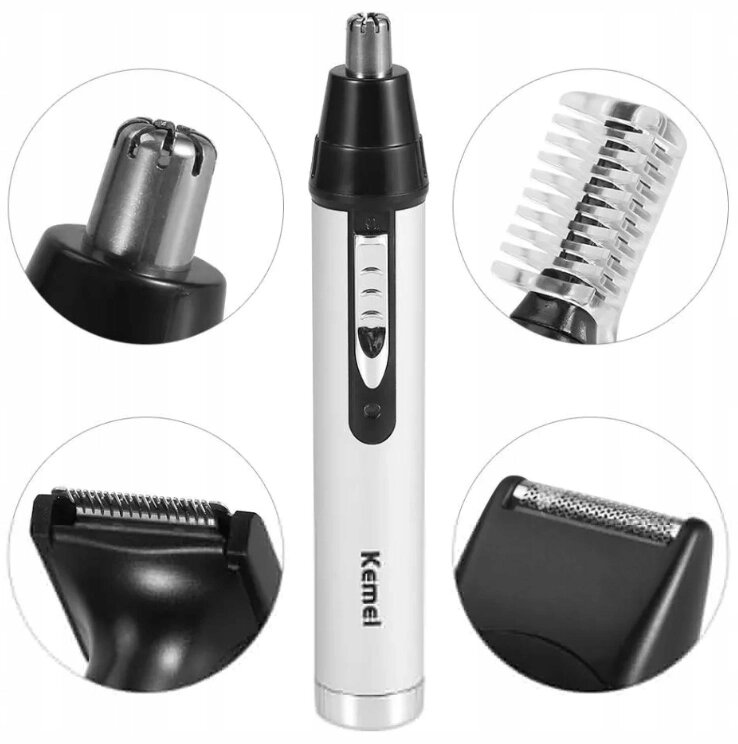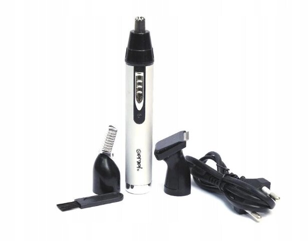 Gemei GM 3107 предназначен для бережного удаления нежелательных волосков в носу и ушах. Удобная головка обеспечивают быстрое, простое и комфортное подравнивание без неприятных ощущений. Усовершенствованная система защиты от порезов и выдергивания волосков Благодаря современным технологиям режущий элемент защищен специальной ультратонкой сеткой с закругленными кончиками, которые предотвращают раздражение кожи. Оптимальный угол наклона триммера позволяет легко подравнивать волоски в ушах и носу — вы можете быть уверены в эффективности удаления нежелательных волос. Высокоточные прорези в неподвижном и вращающемся ножах обеспечивают эффективное и быстрое подравнивание волос. В комплект входят 3 насадки: - Насадка для стрижки волос в носу и ушах - Насадка для окантовки, для интимной стрижки - Насадка для бровей Преимущества: - Компактна и проста в использовании. - Легкая и качественная. - Лезвия из нержавеющей стали. - Встроенный аккумулятор - Не раздражает кожу. - Легко очищается при помощи щеточки Комплектация: - Триммер GM 3107 - Насадка для окантовки - Насадка для бровей - Насадка для удаления волос в ушах и носу - Щеточка для чистки насадок - Кабель для зарядки
